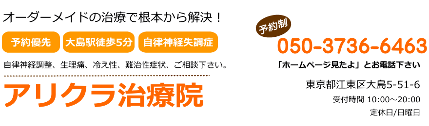【江東区大島で自律神経失調・腰痛・肩こりでのお悩みに評判!】アリクラ治療院